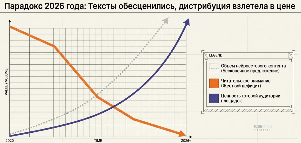 🎭 Акт 1: Парадокс 2026 года — контент обесценился, площадки подорожали